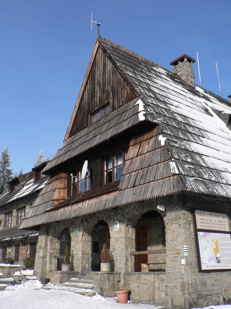 Dla tych którzy wspinają się na Turbacz często głównym celem jest przede wszystkim przepięknie położone Schronisko PTTK. Przed nim istniały tu już dwa tego typu budynki, które postawiono przed i w trakcie II wojny światowej, które jednak spłonęły. Schronisko które możemy podziwiać dziś zostało zbudowane i wykończone wg projektu niesamowitej polskiej architektki i projektantki Anny Górskiej (współprojektowała ona również wiele tatrzańskich schronisk np to w Dolinie Pięciu Stawów, czy w Dolinie Chochołowskiej). Zbliżając się do budynku przystań na chwilę i zauważ jego kamienne ściany i arkady oraz strzelisty mansardowy dach (oryginalnie był kryty gontem). W środku zwróć uwagę na szczegóły – tu wszystko zostało pieczołowicie zaprojektowane (oczywiście budynek przeszedł wiele modernizacji, ale jego pierwotny charakter ciągle jest tam żywy). Schronisko posiada ponad 100 miejsc noclegowych i dużą jadalnię, gdzie można spróbować lokalnych przysmaków np pysznej kwaśnicy czy oscypka. My jednak najbardziej lubimy siedzieć na zewnątrz z herbatką, podziwiać niesamowitą panoramę tatr, która się stąd roztacza i wdychać zapach lasu.